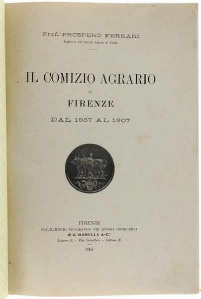 IL COMIZIO AGRARIO DI FIRENZE DAL 1867 AL 1907.