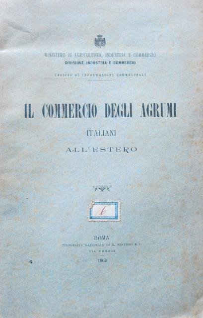 Tipografia Nazionale di G. Bertero e C., Roma 1902. In 8vo grande, pp. XIII, 297, bross. edit. in carta. Contiene foglio omaggio editoriale abbinato all'invio del volume. Non comune e di curiosa attualità nella comparazione degli odierni problemi relativi alle importazioni attuali in Italia. Usuale ingiallimento e fioriture ma buono.