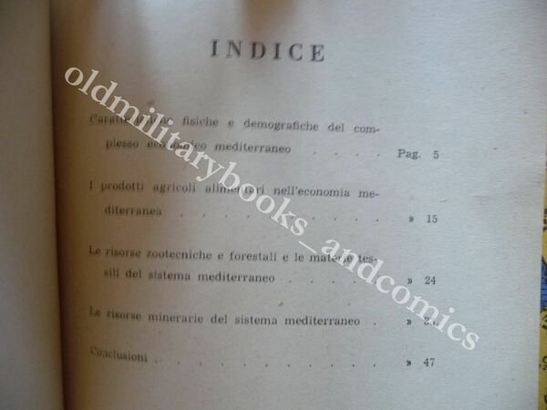 TITOLO: IL COMPLESSO ECONOMICO MEDITERRANEO NEL QUADRO DEL NUOVO ORDINE EUROPEO E MONDIALE DESCRIZIONE: S.A. AUGUSTEA Roma 1941 br. ed. ill. a col. con risvolti pp. 51 con ill. b/n. e col. n.t. in 16°. CONDIZIONI: Buone. PESO / WEIGHT: 100 gr. without package