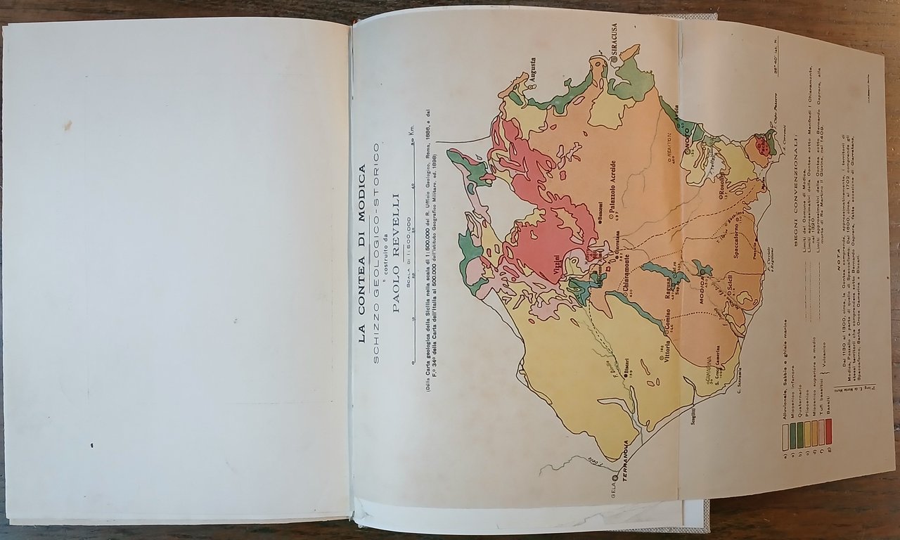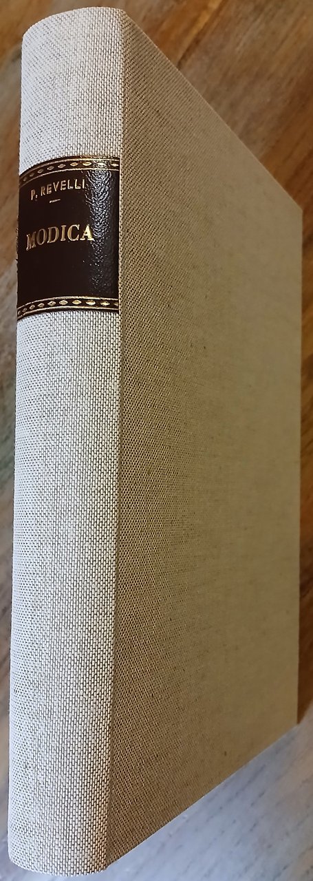 (Storia locale - Sicilia - Territorio di Ragusa) In 8°, legatura in piena tela canapa, al dorso tassello in pelle marrone con titoli in oro, conservate le copertine della brossura editoriale, pp. XIV,(2),331,(1),XXVIII,(4), con una tavola a doppia pagina (Dati climatologici sul Comune di Modica), 8 tavole con immagini fotografiche in bianco e nero ed una carta a colori ripiegata (La Contea di Modica. Schizzo geologico-storico) fuori testo. Le pagine XXV-XXVI e XXVII-XXVIII dell'Appendice sono doppie. Uno strappetto riparato alla prima carta dell'errata, peraltro volume solido e ben conservato. Edizione originale.