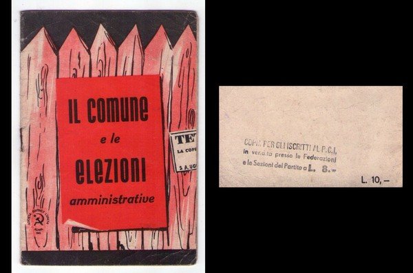 Note: In 16°, br. edit. ill. (timbretto "Copia per gli iscritti al P.C.I. in vendita presso le Federazioni e le Sezioni del Partito a L. 8" al piatto post., lievi tracce d'uso); pp. 15,(1); strappetti diffusi; cascia editrice con il simbolo falce e martello; discreto es.
