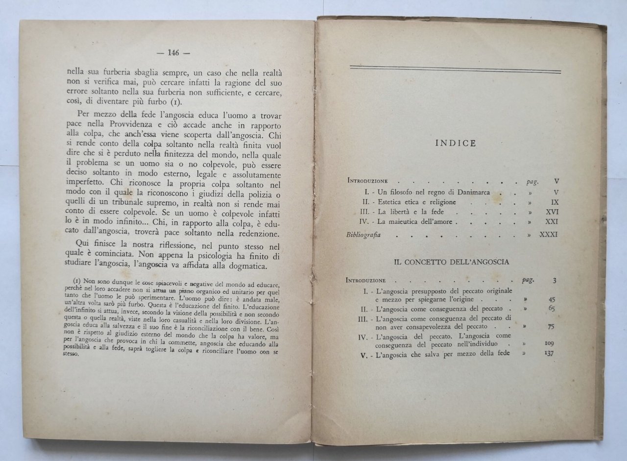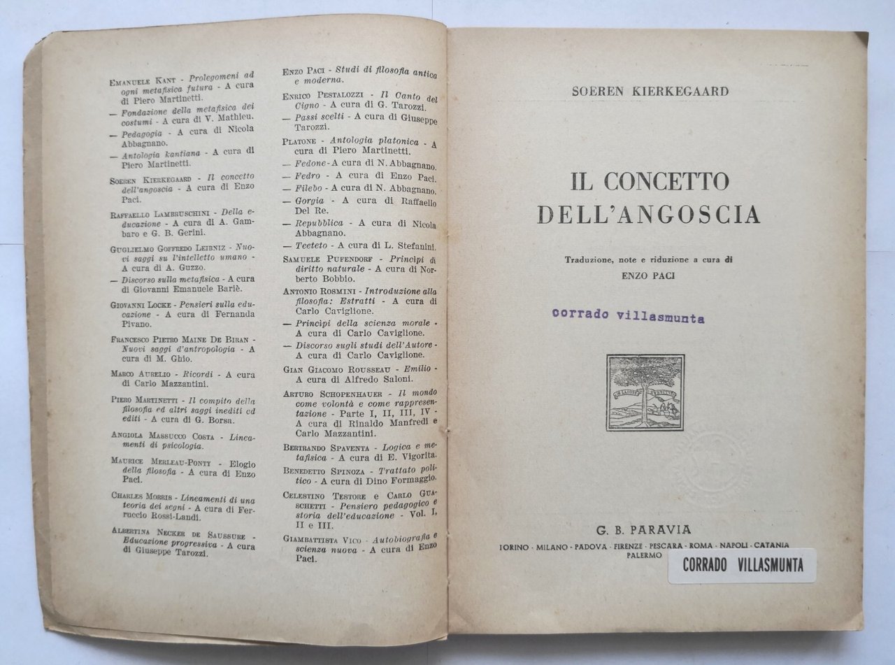IL CONCETTO DELL'ANGOSCIA di Soeren Kierkegaard 1960 Paravia Libro filosofia