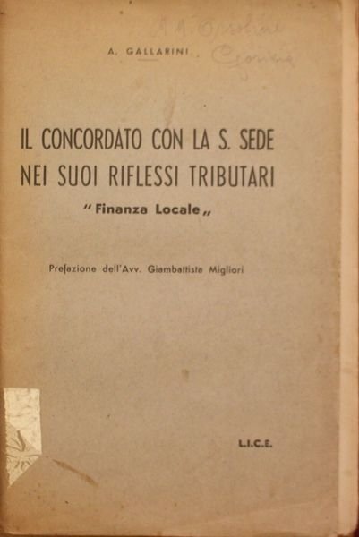 "Il Concordato con la S.Sede nei suoi riflessi tributari"."Finanza Locale".