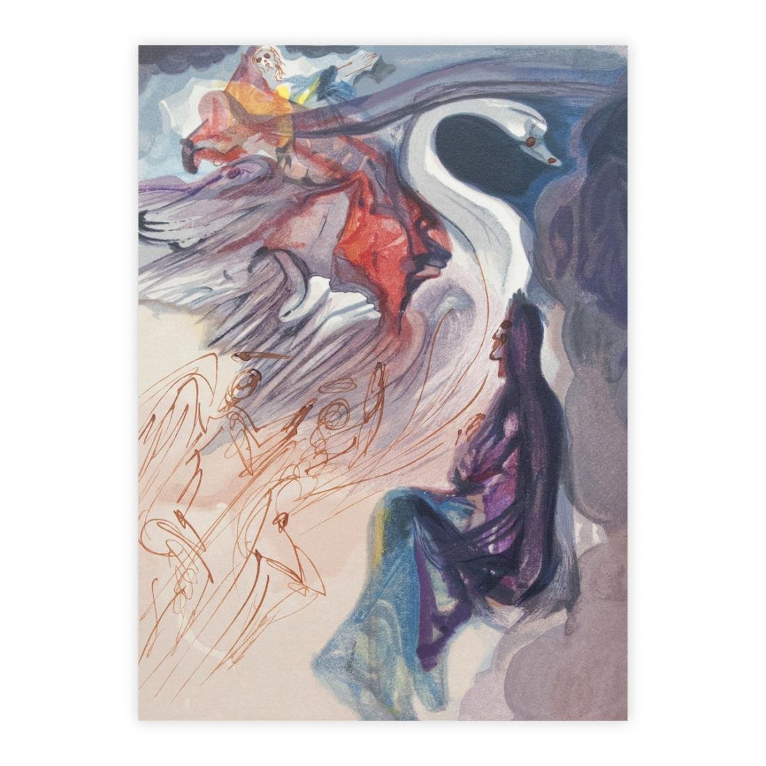 14444 NEL CIELO DI GIOVE 2 350.00 Parea dinanzi a me col l’ali apertela bella image che nel dolce fruiliete facevan l’anime conserte:" (CANTO XIX) Salvador Dalì La Divina Commedia - ParadisoDimensioni folio cm 33 x 26Supporto: Xilografia Originale - 1960Provenienza: La Divine comédie, Edizioni D'Art Les Heures claire rue Bonaparte 19 Parigi 1959-1963La tavola in vendita è completa di passepartout pronta per essere incorniciata, è in perfette condizioni generali.Certificato di Autenticità (C.O.A.) allegato.