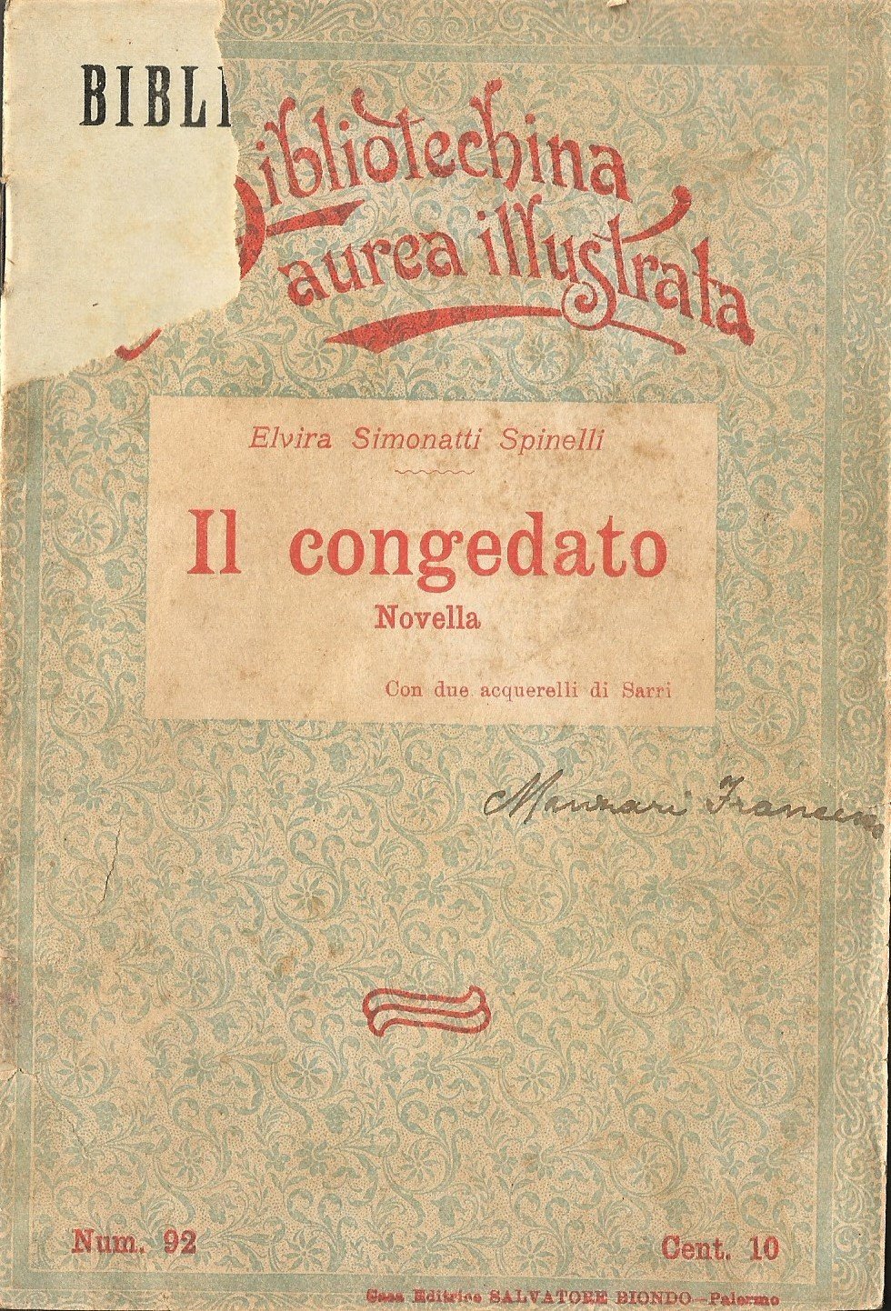 Salvatore Biondo Editore BIBLIOTECHINA AUREA ILLUSTRATA 1909