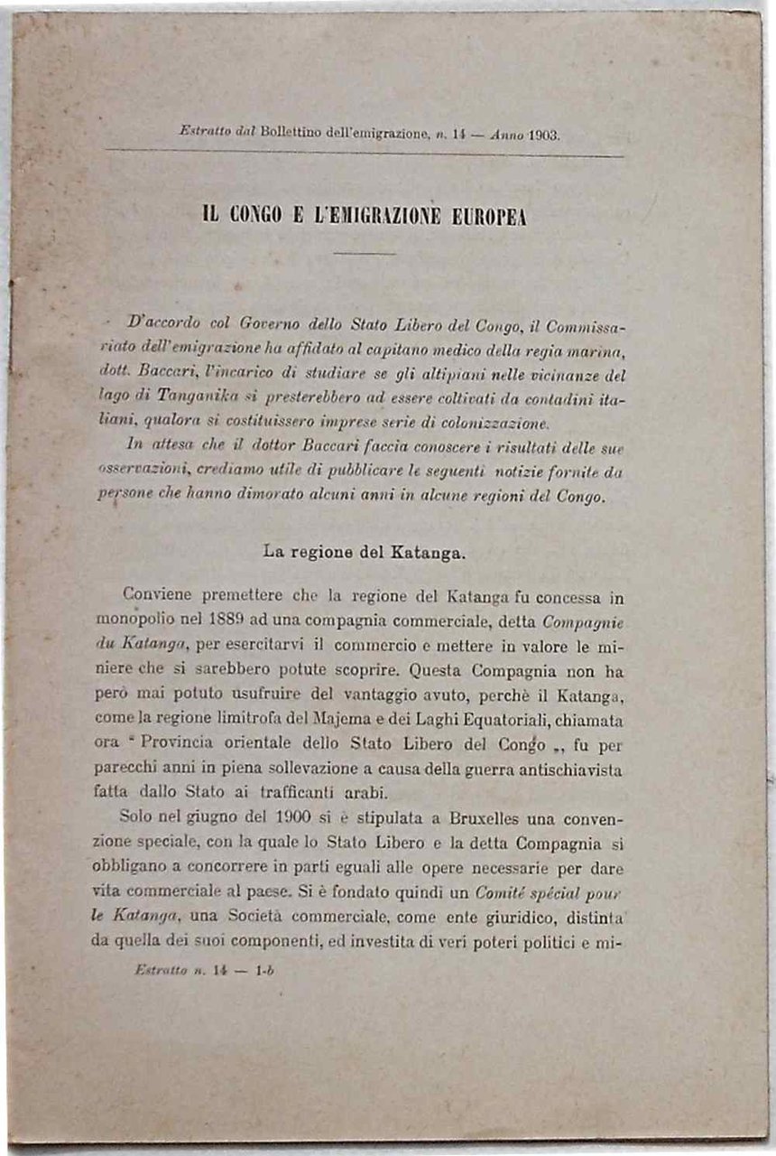 Il Congo e l'emigrazione europea.