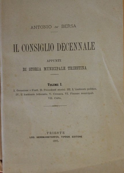 Il consiglio decennale - appunti di storia municipale triestina Volume I., Volume II.
