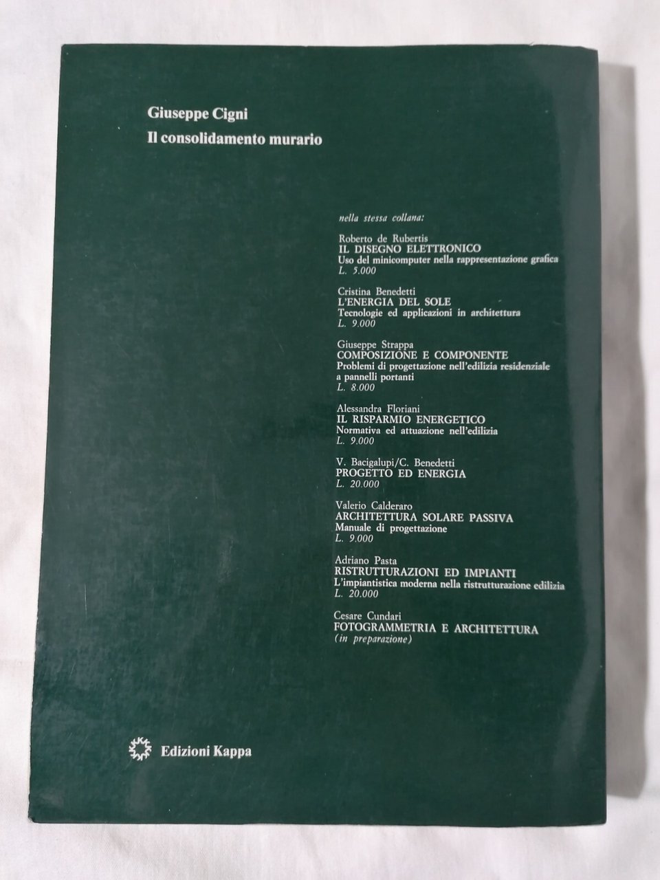Il Consolidamento Murario Tecniche D'Intervento Libro Giuseppe Cigni Kappa 1978