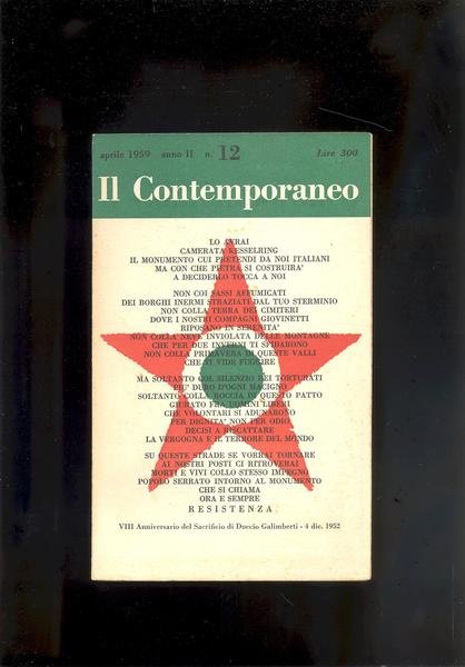 IN 8° ( cm.21 X 13 ), pp.149, COPERTINA EDITORIALE ILLUSTRATA A COLORI CON TITOLO.<BR>RIVISTA POLITICO - CULTURALE A CADENZA MENSILE - n° 12, ANNO II, APRILE 1959.<BR>DIRETTORE RESPONSABILE: ANTONELLO TROMBADORI. NUMEROSE ILLUSTRAZIONI in b/n,<BR>NELTESTO e f.t. OTTIMA CONSERVAZIONE.ID 1822