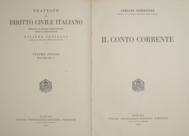 Collana Trattato di Diritto Civile italiano. Vol. VIII, tomo terzo, fasc. 1° - in 8° - pp.VIII + 42 - Tela - Tasselli con titoli in oro al dorso - Nota di possesso a inchiostro in antiporta