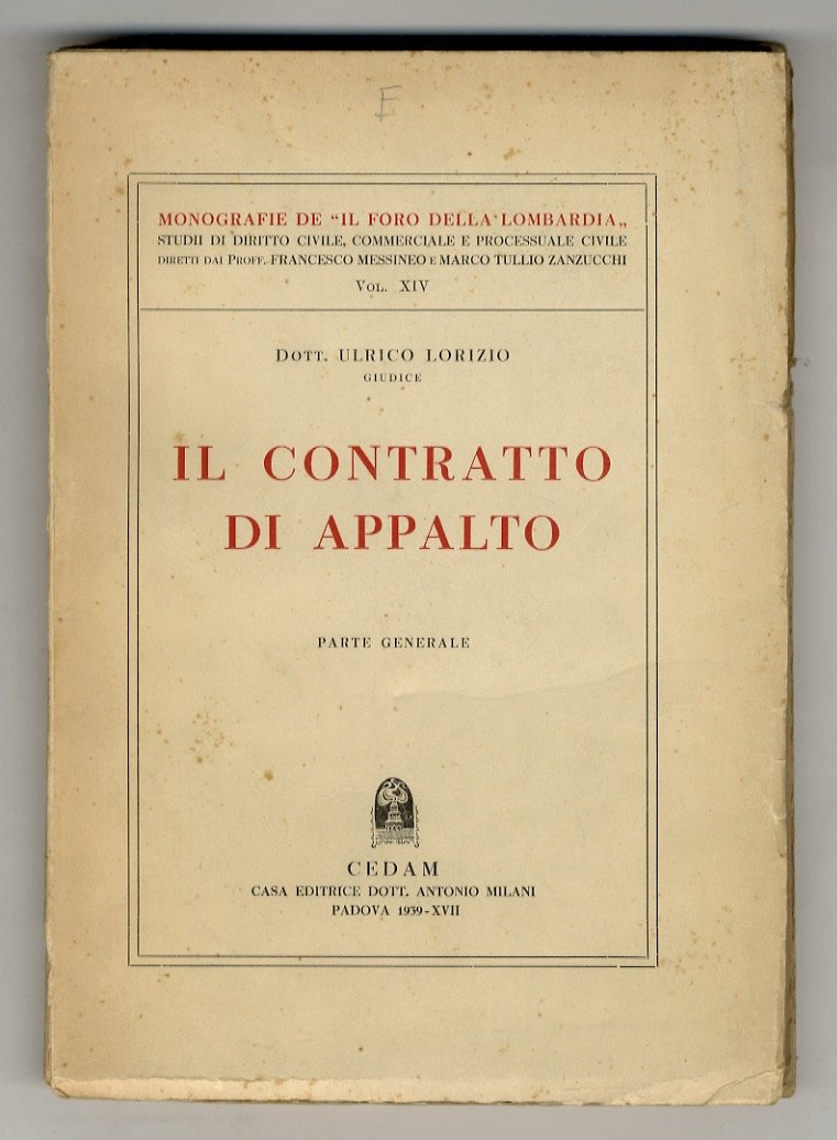 Padova, CEDAM, 1939, in-8, brossura editoriale, pp. 310. Condizioni molto buone.