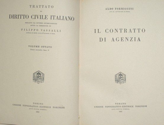 Collana Trattato di Diritto Civile italiano. Vol.VIII, tomo secondo, fasc. 1° - in 8° - pp.110 - Tela - Tasselli con titoli in oro al dorso
