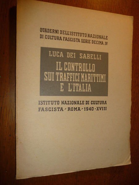 DESCRIZIONE: Istituto Nazionale Fascista di Cultura Roma 1940 – XVIII Serie X n. IV. Br. ed. pp. 44 in 8° intonso. Si tratta di uno studio sul controllo dei traffici marittimi e l'Italia di Luca dei Sabelli. CONDIZIONI DELL'OGGETTO: Ottime/Perfette, vol. intonso. PESO/WEIGHT: 70 g without package
