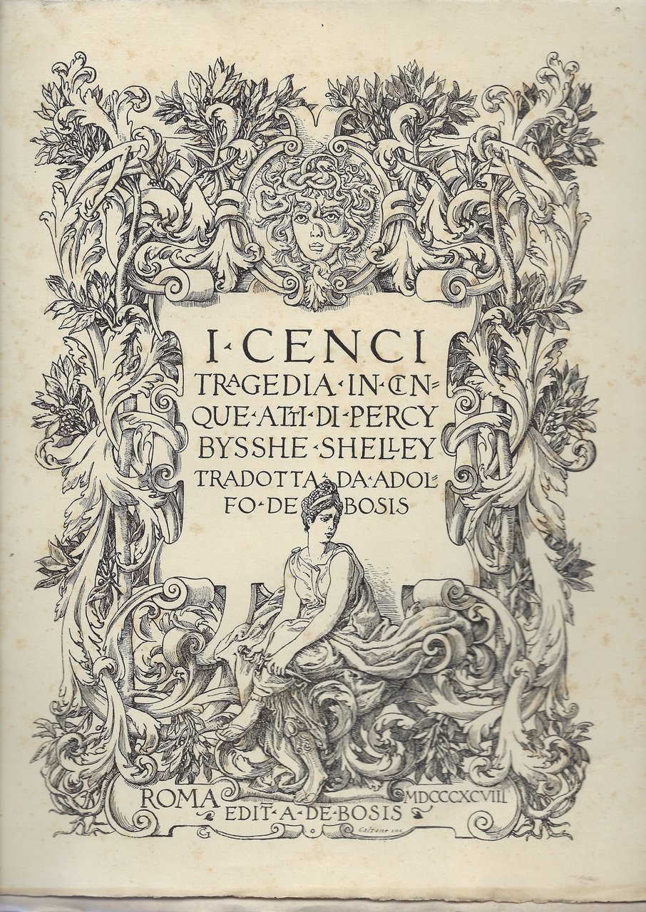 Alle pagine interne ritratti dell'Autore e di B. Cenci, e sontuoso frontespizio figurato, con la probabile immagine di Beatrice Cenci ,disegnato da Cellini ed inciso da Calzone.