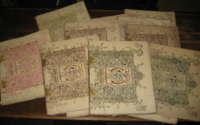 Tutto il pubblicato della storica rivista fondata e diretta da Adolfo De Bosis, fra le più importanti della cultura italiana a cavallo tra Otto- e Novecento. 12 fascicoli (di cui uno doppio) in-4° (295x240mm), belle brossure originali disegnate da Giuseppe Cellini con elaborati motivi ornamentali e floreali a entrelac incisi in xilografia. Minimali restauri marginali alle brossure di alcuni fascicoli. Ogni fascicolo è illustrato con belle tavole riprodotte in fotoincisione f.t. e n.t. di artisti come Giuseppe Cellini, Giulio Aristide Sartorio, Francesco Paolo Michetti, Alessandro Morani, Lawrence Alma-Tadema, Elihu Vedder, Enrico Coleman,ecc. Ottimo esemplare in barbe, parzialmente intonso e impresso su bella carta forte. La rivista, pubblicata da De Bosis a proprie spese, fu il tipico frutto dell'estetismo decandente fin de siècle (con echi ancora palpabili del gusto preraffaellita) e adunò alcuni dei maggiori nomi delle lettere italiane del tempo, D'Annunzio in testa a tutti. 'Una sorta di positivismo da superuomo, mescolato di spirito libertario e al tempo stesso imperialista, antipacifista, anima e arricchisce i bellissimi fascicoli, dai fregi alessandrini e dai grandi margini. è questo il momento più singolare del nostro decadentismo. è nel 'Convito' che si riconosce il grado artistico del parnassianesimo italiano' (Giorgio Petrocchi). La rivista risulta così composta: I) Libro I. Gennajo 1895, pp. 86, (2), VI, (2). Comprende, oltre al 'Proemio' generale di e Bosis, 'Gog e Magog' di Giovanni Pascoli, la prima parte in edizione pre-originale de 'Le vergini delle rocce' dannunziane (il seguito, che d'ora in poi omettiamo di segnalare nella descrizione, si trova nei fascicoli seguenti), l'Itinerario verso i paesi d'Etiopia' di Scarfoglio (anch'esso prosegue nei fascicoli seguenti), le 'Note su Giorgione e su la critica' di D'Annunzio stesso. II) Libro II. Febbrajo 1895, pp. 89-155, XVI. Contiene fra l'altro 'Alexandros' di Pascoli, un saggio di Sartorio sulla pittura di Dante Gabriele Rossetti (prosegue nei fascicoli seguenti). III) Libro III. Marzo 1895, pp. (2), 159-224, XVII-XIX, (1). Contiene fra l'altro l'Elegia secolare' di De Bosis. IV) Libro IV. Aprile 1895, pp. (2), 227-286, (2), XXI-XXVIII. Contiene fra l'altro 'Solon' di Pascoli. V) Libro V. Maggio 1895, pp. (2), 291-344, XXIX-XXXVI. Contiene fra l'altro la lirica 'Venezia' di Enrico Panzacchi e uno studio di Adolfo Venturi 'Al regno dei cieli. Studio iconografico sull'Assunzione della Vergine'. VI) Libro VI. Giugno 1895, pp. (2), 347-415, XXXVII-LVI. Contiene fra l'altro la traduzione di De Bosis dell'Ode al vento d'Occidente' di Shelley e la prima puntata del saggio dantesco di Pascoli 'Minerva oscura' (prosegue nei fascicoli seguenti), oltre alle 'Note su Omar Khayyam e su Elihu Vedder' dello stesso De Bosis (prosegue anch'esso nel fascicolo seguente). VII) Libro VII. Luglio 1895-Marzo 1896, pp. (2), 419-495-LVII-LXVIII. Contiene fra l'altro l'Ode per colui che deve venire' di D'Annunzio e 'La Morte' di Giovanni Pascoli. VIII) Numero speciale per i feriti d'Africa privo di titolazione e di numerazione di fascicolo, impresso nel febbraio 1896, di pp. 44 nn. La brossura, oltre alle consuete illustrazioni, reca il simbolo della Croce Rossa. Contiene fra l'altro il seguito dell'Ode a colui che deve venire' e 'Crisantemi' di Pascoli. VIII bis) Libro VIII. Aprile-Giugno 1896, pp. (2), 499-579, LXIX-LXXXII, (2). Contiene fra l'altro la 'Canzone di Legnano' del Carducci, la 'Rapsodia lirica' di Enrico Nencioni, 'Il tipo della Vergine' di Adolfo Venturi e una traduzione in prosa di De Bosis dei poemi di Robert Browning su Andrea Del Sarto. IX) Libro VIIII. Luglio-Dicembre 1896, pp. (2), 583-658, (2), LXXXVII-CX, (2). Contiene fra l'altro un saggio di D'Annunzio su Francesco Paolo Michetti, il carme latino di Pascoli 'Castanea', 'Nella Grecia di Omero' di Vittorio Spinazzola, 'Per la morte di un poeta' di D'Annunzio (in morte del Nencioni), 2 traduzioni di De Bosis di liriche di Shelley. X-XI) Libri X-XI. Gennaio 1898, pp. (6), 667-899, (5). Contiene, monograficamente, la traduzione di De Bosis de 'I Cenci' di Shelley, seguita da un saggio su tale tragedia del traduttore stesso e da delle 'Note sulla famiglia Cenci' di Arturo Vecchini. XII) Libro XII. Dicembre 1907, pp. (10), 911-1085, (11). Il fascicolo conclusivo della rivista contiene, monograficamente, liriche del De Bosis. 'Ultima importante rivista romana di fine '800, Il Convito, secondo il progetto originario doveva aver termine entro il primo anno, uscendo quindi dal gennaio al dicembre. Probabilmente anche per difficoltà editoriali, i fascicoli furono invece pubblicati nell'arco di dodici anni. fino al 1907, anche se solo i primi nove numeri (dal gennaio 1895 al dicembre 1896) possono essere considerati come fascicoli della rivista. I successivi risultano infatti dei volumi autonomi, poiché contengono soltanto scritti del D.: nei libri X e XI, usciti nel gennaio 1898, si legge la versione debosisiana de I Cenci di Shelley, seguita da una Nota su Percy Bysshe Shelley e su 'I Cenci' dello stesso D. e dalle Note sulla famiglia Cenci - verità e poesia di Arturo Vecchini. Il libro XII, pubblicato nel dicembre del 1907, contiene le liriche del D. dedicate alla memoria di Nencioni, Panzacchi e Boggiani, già pubblicate in volume nel 1900. Il Convito fu realmente una delle espressioni più caratteristiche e vistose dell'estetismo, a partire dall'aspetto esterno dei fascicoli stampati su carta appositamente fabbricata, con fregi di rinomati pittori ed eliotipie fuori testo. D'altra parte la stessa sede de Il Convito, un piccolo appartamento bizzarro nel palazzo Borghese, che era stato una volta il bagno di Paolina Borghese ed era stato affrescato da un seguace dello Zuccari, aveva un tono tipicamente decadente e preraffaellita. Nonostante la forte personalità di molti dei collaboratori, il periodico si presentava con un aspetto unitario, a partire dal culto della 'Bel