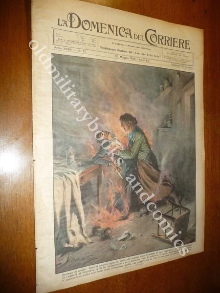DESCRIZIONE: Domenica del Corriere, Milano, Anno 36 n. 21 (27 maggio 1934). COPERTINA: Eroismo di madre. RETRO: Incidente automobilistico a 200 Km all'ora a Parigi. La Domenica del Corriere è stato un popolare settimanale italiano fondato a Milano nel 1899 e chiuso nel 1989. Apparve per la prima volta nelle edicole l'8 gennaio 1899 come supplemento illustrato del Corriere della Sera. Stampata in grande formato (sul modello del domenicale La Tribuna illustrata), aveva 12 pagine e veniva distribuita gratis agli abbonati del Corriere, oppure si poteva acquistare in edicola per 10 centesimi. La prima e ultima di copertina erano sempre disegnate. Il Corriere si avvaleva di un giovane disegnatore, Achille Beltrame, allora sconosciuto, a cui veniva affidato in ogni numero il compito di rendere con la sua tavola il fatto più interessante della settimana. Dopo la sua morte nel 1945, fu sostituito da Walter Molino che, come il suo predecessore, firmò memorabili copertine. A differenza dei settimanali dell'epoca, la Domenica del Corriere diede ampio spazio alle fotografie e ai disegni, e questo fu uno dei motivi del suo successo. CONDIZIONI: Buone senza spillette, proveniente da rilegatura, senza sovracc. azzurrina. PESO / WEIGHT: 57 gr. without package.