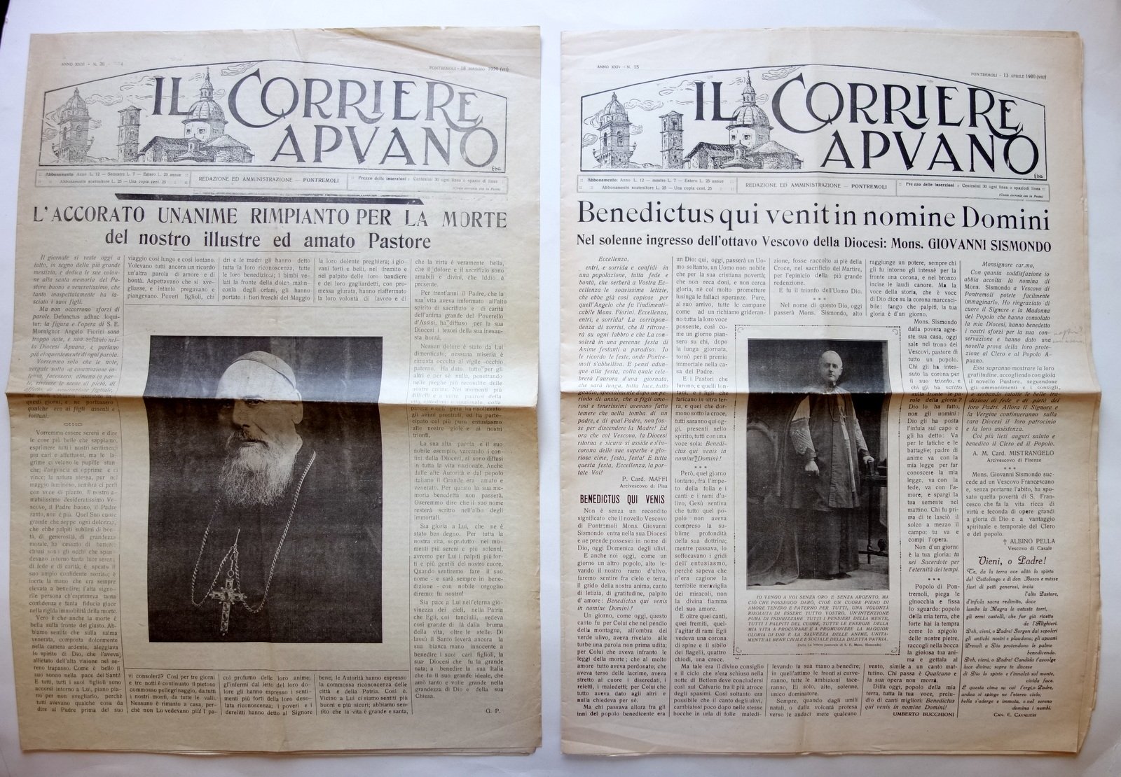 Il Corriere Apuano 2 Numeri Pontremoli 18/5/1929 13/4/1930 Completi