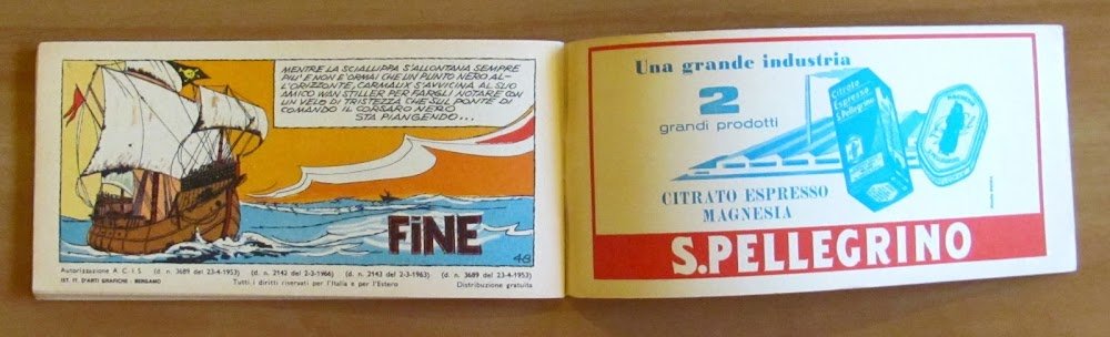 Illustrazioni a fumetti in b/n e a colori, a pagine alterne, di M. Congiu e L. Vigevano. Editore Magnesia San Pellegrino, 1966. Brossura editoriale. 18x7; pp.48. Rara striscia originale in Ottimo stato. , Ottimo (Fine)