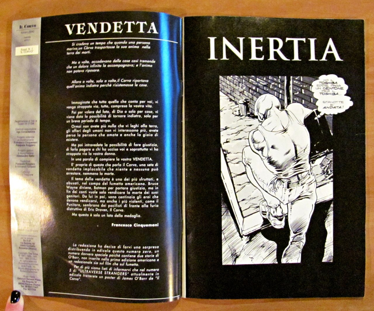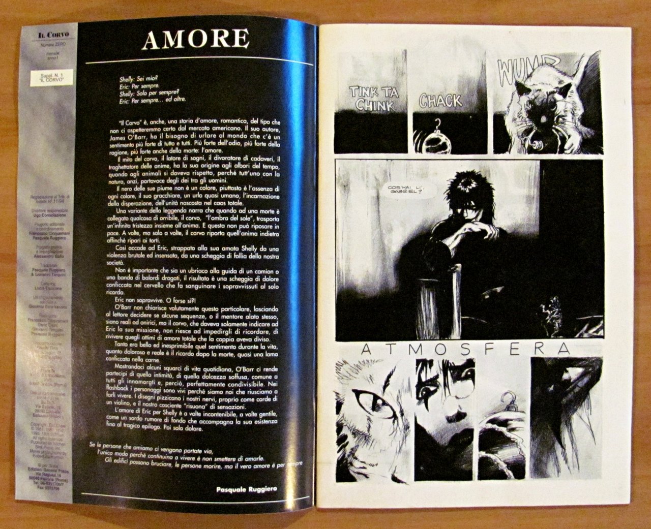 N.0 - 1994. Edizione Platinum. 1 copertina a colori e 1 copertina in b/n; molte illustrazioni a fumetti e fotografiche in b/n n.t. Il N.0 contiene due storie di O'Barr , non inserite nella prima edizione americana, e un redazionale sia sul film che sul fumetto. Ed. General Press - Roma, 1994. Brossura editoriale. 17x26. Ottimo stato. , Ottimo (Fine)