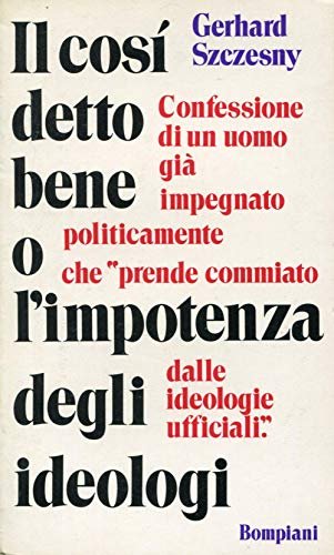 Szczesny , Gerhard il cosidetto bene o l'impotenza degli ideologi. Milano, V. Bompiani 1972, Cose d'oggi 84 22 cm 209 p. Trad. di Silvia Stefani. (9511)