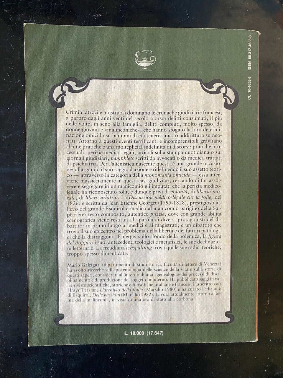 Il crimine e la colpa. Discussione sulla follia, E. J. Georget, Marsilio, 1984