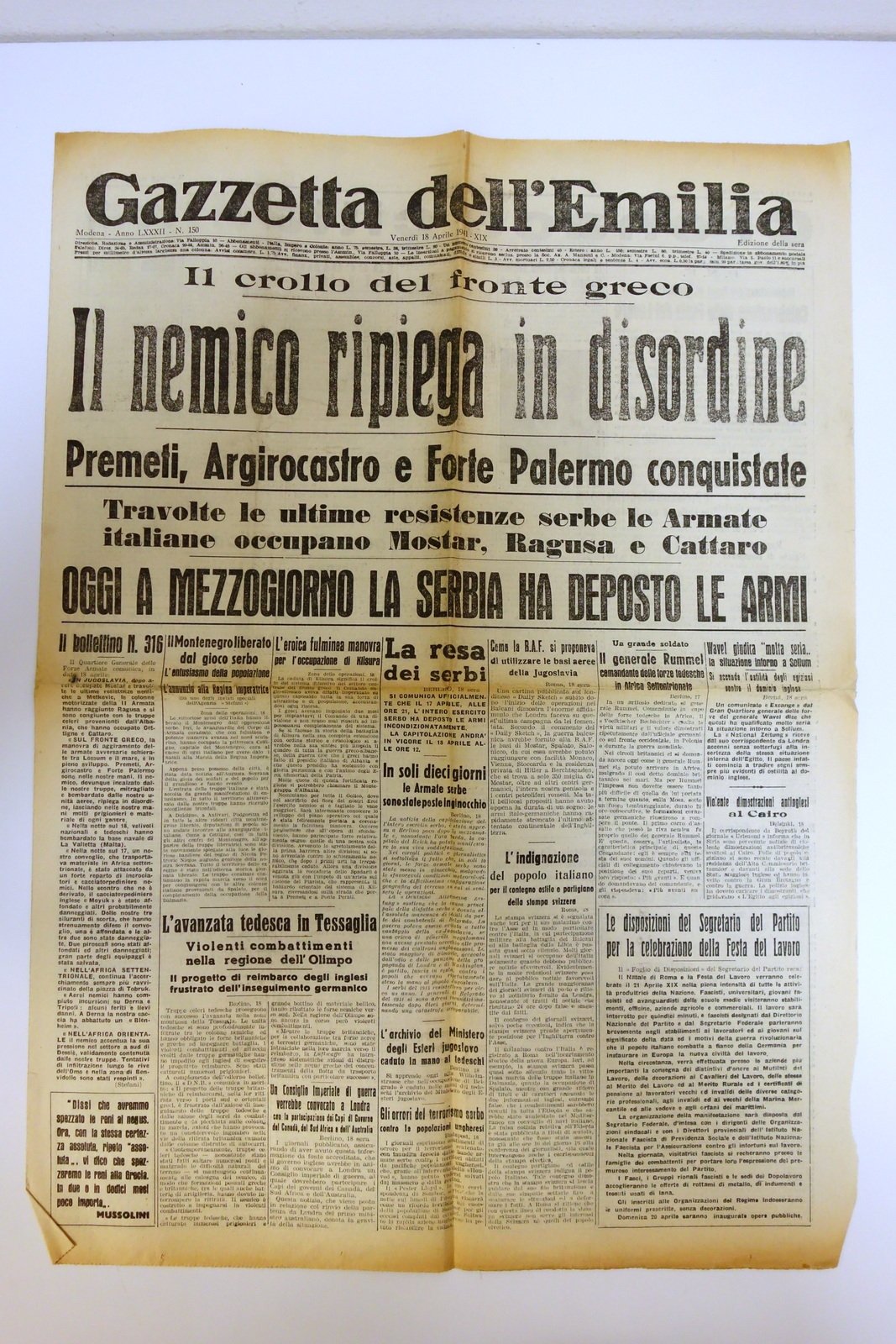 IL CROLLO DEL FRONTE GRECO SERBIA HA DEPOSTO ARMI GAZZETTA DELL'EMILIA 18/4/1941 | Libri antichi e moderni |
