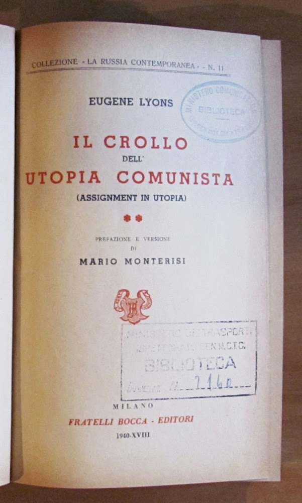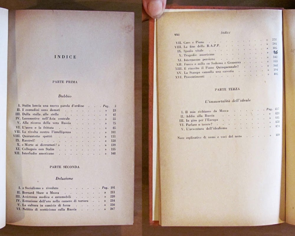 Con una carta Politico-Amministrativa dell'URSS in b/n alla fine del primo volume. Completo in 2 Volumi. Ed. Fratelli Bocca - Milano, 1940. Tele editoriali con tasselli in pelle con titoli ai dorsi e etichette del tempo. Appunti a penna nell'antiporta, timbri di vecchia appartenenza a Biblioteca ai frontespizi e all'ultima pagina di entrambi i volumi. Piccolissima mancanza alla cartina geografica alla fine del primo volume. 13x20; pp.345+488. BUONISSIMO STATO , Molto buono (Very Good)