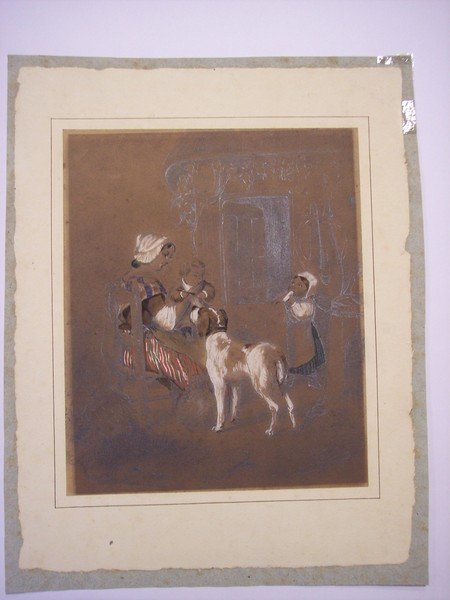 Disegno a mina di piombo e tempera su carta.<BR>Cm. 20 x 16.<BR>Folgio molto brunito; incollato su carta.<BR>Firma illeggibile