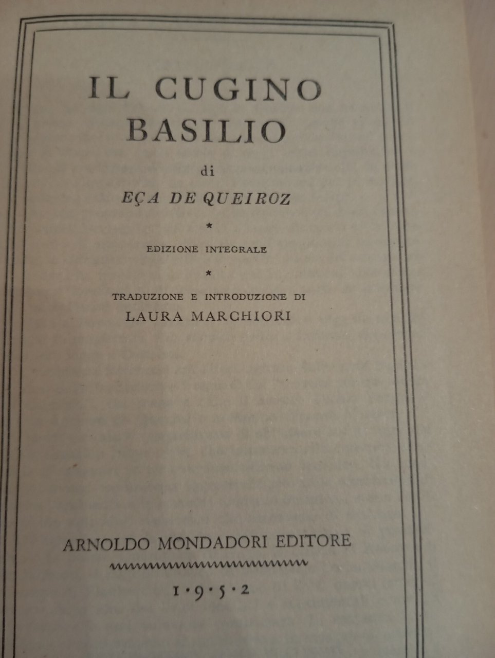 Il cugino Basilio, Eca DE Queiroz, BMM Mondadori, 1952