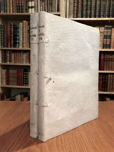 2 volumi in-4° (cm. 24,5), genuine legature coeve in cartonato alla rustica con titolo anticamente ms. su etichette ai dorsi; pp. 8, 184; [4] 160 in ottimo stato e in barbe; qualche fioritura. Interessante storia del popolo ebraico e della Palestina attraverso l'interpretazione della Bibbia, con particolare attenzione agli aspetti del commercio e delle finanze rivolti al Duca di Modena Francesco III. Ottimo esemplare. (SP3)