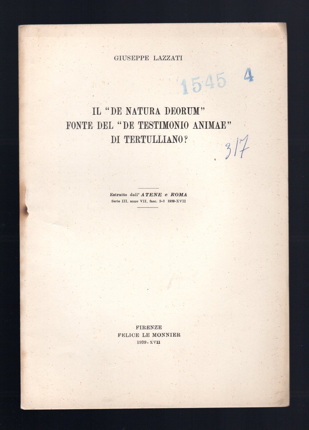 Il "De Natura deorum" fonte del "De testimonio animae" di Tertulliano?