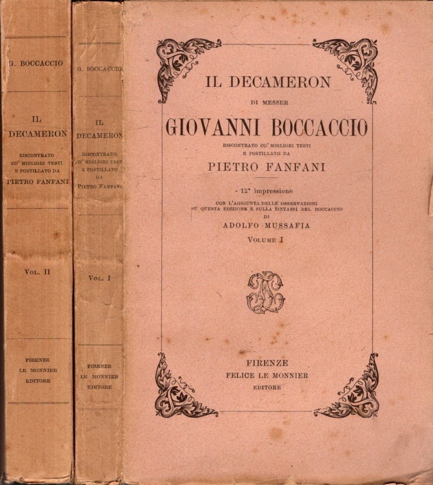 Il Decameron di Messer G. B. riscontrato co' migliori testi e postillato da P. Fanfani con l'aggiunta delle osservazioni su questa edizione e sulla sintassi del Boccacio di Adolfo Mussafia