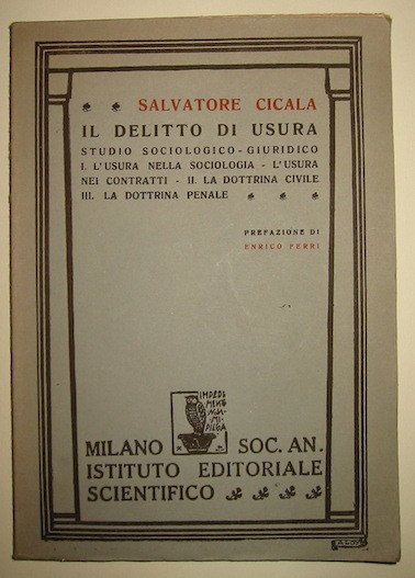 Il delitto di usura. Studio sociologico-giuridico. I. L’Usura nella Sociologia. L’Usura nei contratti. La prevenzione - II. La dottrina civile. - III. La dottrina penale.
