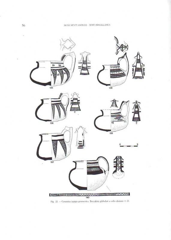 In-4°, legatura editoriale in brossura, pp. 76(4); con 31 pagine di figure intercalate nel testo, e una tav. fuori testo di illustrazioni fotografiche, alla fine del volume. Esemplare allo stato di nuovo, e intonso. Il deposito di Borgo Nuovo a Taranto costituisce già da molti anni una fonte di riferimento per lo studio della ceramica iapigia a decorazione geometrica. La documentazione proveniente da questo contesto ora si arricchisce della pubblicazione integrale del materiale portato alla luce: ceramica figulina dipinta e ceramica d'impasto, archeologicamente importante anche per le connessioni formali esistenti tra le due classi. L'Autore, inserendosi nel quadro delle ricerche più recenti, suggerisce rapporti formali e decorativi con ambienti transadriatici (ceramica devolliana albanese e geometrica corinzia).