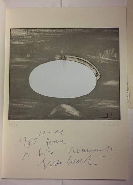 formato 31,5X24. Catalogo della mostra al Louisiana Museum. Tiratura in 90 copie con una incisione originale di Cucchi firmata e numerata e una DEDICA AUTOGRAFA a importante critica italiana. Bella copia