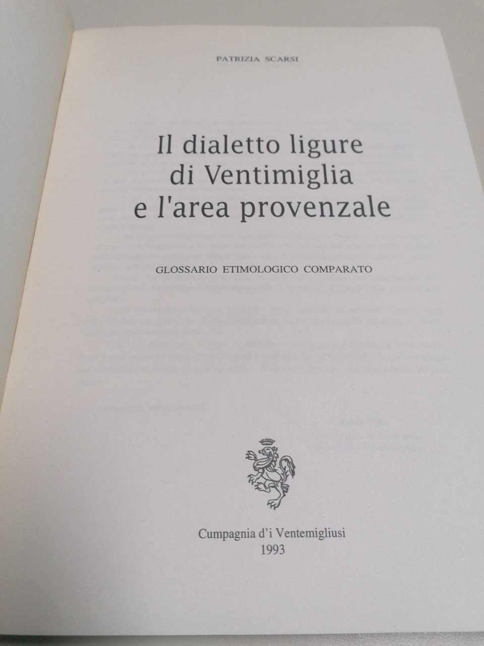 Cumpagnia d'i Ventemigliusi, 1993 Brossura, 134 pp. Condizioni più che buone