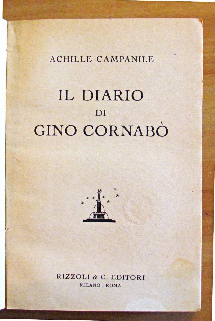 1 illustrazione n.t. in b/n di Cornabò eseguita da Campanile. Ed. Rizzoli - Milano, I edizione 1942. Brossura editoriale con leggera gora alla sovraccoperta. Peraltro libro freschissimo. 12,5x18,5; pp.339. BUONISSIMO STATO , Molto buono (Very Good)