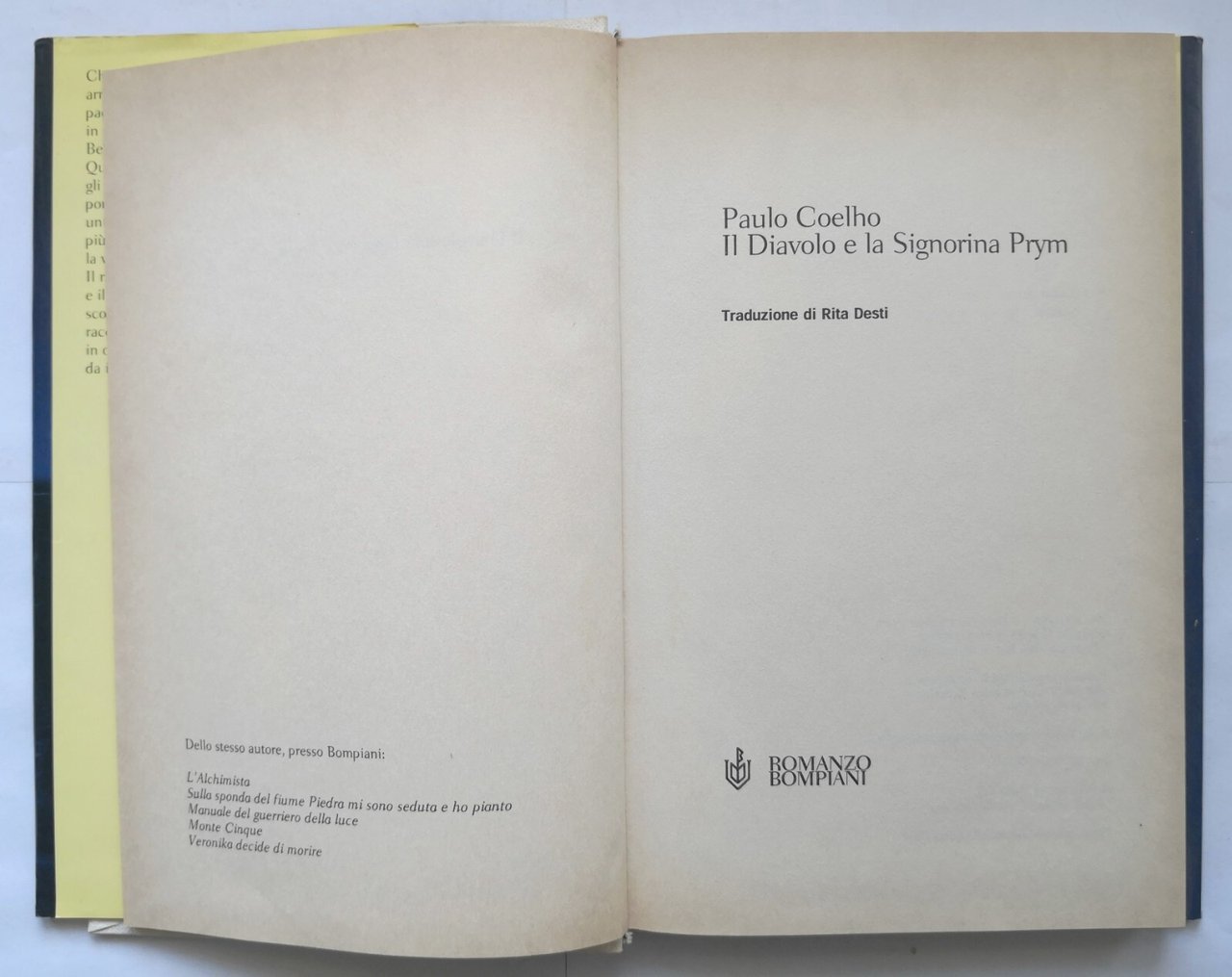 IL DIAVOLO E LA SIGNORINA PRYM di Paolo Coelho 2000 Romanzo Bompiani libro