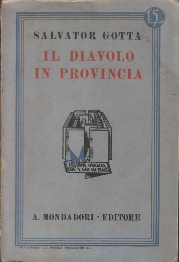 In-16° (cm 19,4x12,9), pp. 214, (2), copertina editoriale Normali segni d'uso al dorso. Piccoli, marginali segni d'umido alle prime sei pagine e all'ultima pagina bianca; due strappetti, di cm 1,5 circa, senza perdite, nel margine bianco interno delle pagine 7-10. Per il resto buon esemplare. Il colophon del volume riporta come data di edizione il 15 febbraio 1926, ma la copertina editoriale riporta la data Dicembre 1932 - XI. Volume numero 78 nella collana "I libri azzurri". Con ogni probabilità, esemplari della prima edizione del 1926, rimasti invenduti, furono rimessi in commercio nella collana "I libri azzurri", con la sola sostituzione della copertina.