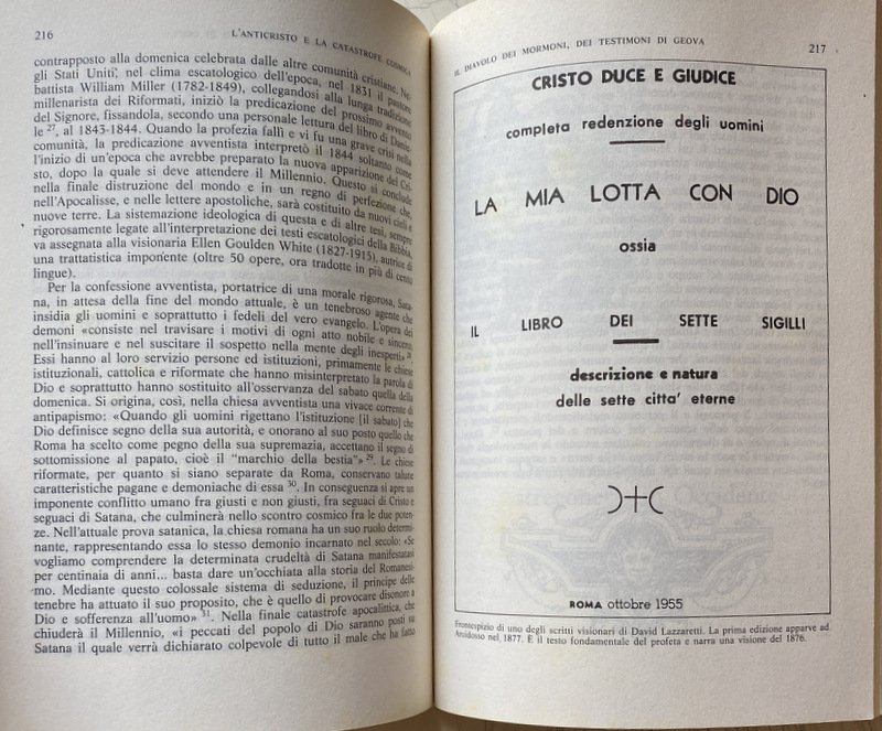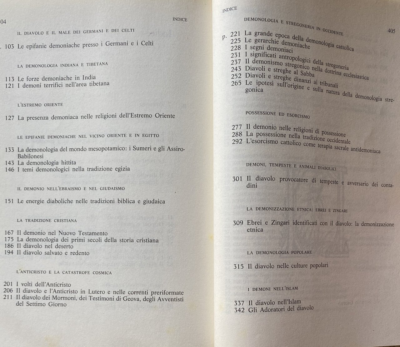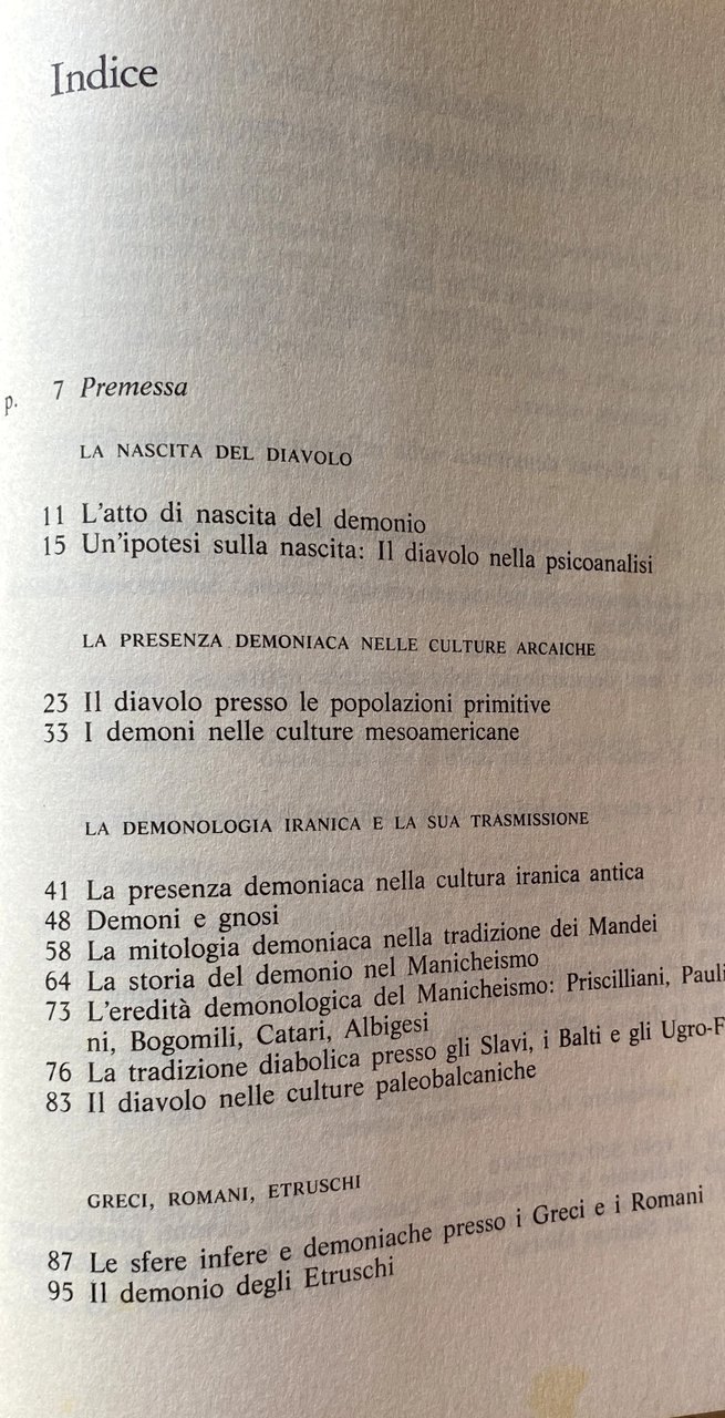 Soggetti: Storia delle religioni, Antropologia religiosa, Folklore, Mitologia, Magia, Occultismo, Demonologia, Satanismo, Riti satanici, Rituali, Simbolismo, Esoterismo, Massoneria, Misteri, Esorcismo, Stregoneria, Diavolo, Satana, Iniziazione, Sangue, Culti, Culto, Miti, Credenze, Superstizione, Chiesa, Cristianesimo, Cattolicesimo, Preti, Indemoniati, Fenomeni paranormali, Poltergeist, Paranormale, Sette sataniche, Spiritualità, Presenze, Voci, Orrore, Male, Bene, Antiche civiltà, Aztechi, Maya, Letteratura, Romanzi, Terrore, Paura, Gialli, Narrativa, Cinema, Storia, Saggistica, Riferimento, Consultazione, Opere generali, Storie vere, Gesù Cristo, Morte, Aldilà, Sindrome demoniaca, Cultura greco-romana, Astrologia, Apparizioni mariane, Miracoli, Spiritismo, Specchio rotto, Olio versato, Toccare ferro, Tredici, Gatto nero, Superstizioni, Oriente, Greci, Romani, Etruschi, Animali diabolici, Zingari, Ebrei, Kabbala, Cabbala, Islam, Zoroastro, Possessione, Esorcismo, Riti iniziatici, Demoni, Tempeste, Sedute spiritiche, India, Gange, Tibet, Egitto, Iside, Osiride, Rito egizio, Lutto, Signora nera, Morte, Maometto, Mistica giudaica, Giudaismo, Antisemitismo, Teologia, Chiesa, Anime, Bambini, Cadaveri, Tomba, Necrofilia, san Domenico, sant'Antonio, Cocullo, Lupi, Abruzzo, Pseudomonarchia daemonum, Liturgia, Seri, Serpenti, Marsi, Cocullesi, Incantatori, Guaritori, Maestri, Massoni, Logge massoniche, Maleficio, Malleus maleficarum, Malocchio, Val di Chiana, Vertighe, Lucio Colletti, Acqua santa, Sefer Jesirah, Genesi, Mosè, David Abulafia, Cabbalismo estatico, Moshe Chaim Luzzatto, Adamo, Bereshit, Talmud, Torah, Corano, Trono, Teofania, Trattati, Zohar, Filosofia, Shekhinah, Midrashim, Enoch, Vangeli apocrifi, Diablo, Saggistica, Bibliografia, Collezionismo, Rarità librarie, Libri rari Vintage fuori catalogo, Colpa, Peccato, Capro espiatorio, Energia, Trance, Transfert, Negatività, Parapsicologia, Paranormale, Giovanni, Apocalisse, Ermetismo, Mercurio, Scritti abruzzesi, Cagliostro, Profezie, Premonizioni, Nostradamus, Preti, Clero, Der Teufel, Delirio, Inferno, Seduzione, Divina Commedia, Dante Alighieri, Thanatos, Illustrazioni, Disegni, Dipinti, Iconografia, Immagini, Incisioni, Psicanalisi, Medioevo, Freud, Hugo Heller, H. Silberer, Erotismo, Eros, Ernest Jones, Edipo, Cherubini, Eden, Ezechiele, Hittiti, Sanscrito, Tavolette, Tenebre, Yama, Sumeri, Assiri, Babilonesi, Maligno, Sole, Tradizione nordica, Snorri, Escatologia, Germani, Celti, Ade, Persefone, Sant'Agostino, De Civitate Dei, Visionari, David Lazzaretti, Sigillo, Institor, Jacob Sprenger, Guazzio, Flagello, Johann Wier, Borbone, Popolari, Manicheismo, Catari, Mormoni, Anticristo, Lutero, Sabba, Adoratori, Collin de Plancy, Profanazione, Angeli caduti, Civetta, Capra, Lupo, Gufo, Belzebù, Drago, Origene, Belfagor, Lucifero, Inquisizione, Patto, Enciclopedie, Guide, Studi culturali, Collezionismo, Libri Illustrati, Rarità librarie, Diable, Cavendish, Leviatano, Messe nere, Cocchiara, Samael, Behemoth, Salomone, Giordano Berti, Egon von Petersdorff, Gershom Scholem, Claudio Marchiaro, Goezia, Gerarchia, Sorat, Chiave, Edward Langton, Daimon, Guaccio, Georg Luck, Arte, Bosch, Enrico Castelli, Giorgio Ieranò, James Hillman, Indemoniati, Bibbia, Tommaso d'Aquino, Grimorio, Vassago, Pandemonio, History of religions, Religious anthropology, Mythology, Magic, Occultism, Demonology, Satanic rites, Rituals, Symbolism, Esotericism, Freemasonry, Mysteries, Exorcism, Witchcraft, Devil, Satan, Initiation, Blood, Cults, Cult, Myths, Beliefs, Superstition, Church, Christianity, Catholicism, Priests, Possessed, Phenomena, Satanic sects, Spirituality, Presences, Rumors, Horror, Evil, Good, Ancient civilizations, Aztecs, Literature, Novels, Terror, Fear, Mysteries, History, Nonfiction, Reference, Consultation, General works, True stories, Jesus Christ, Death, Afterlife, Demonic syndrome, Culture, Astrology, Marian apparitions, Miracles, Spiritism, Broken mirror, Spilled oil, Tap wood, Thirteen, Black cat, Superstitions, Orient, Greeks, Romans, Etruscans, evil animals, Gypsies, Jews, Zoroaster, Possession, Exorcism, Initiation rites, Rituals, Demons, Storms, Seances, Ganges, Egypt, Isis, Osiris, Egyptian rite, Mourning, Black lady, Death, Muhammad, Jewish mysticism, Judaism, Anti-Semitism, Theology, Church, Souls, Children, Corpses, Tomb, Necrophilia, St. Dominic, St. Anthony, Wolves, Liturgy, Charmers, Healers, Masters, Freemasons, Masonic Lodges, Curse, Holy Water, Genesis, Moses, Ecstatic, Koran, Throne, Theophany, Treatises, Philosophy, Apocryphal Gospels, Non-Fiction, Bibliography, Collectables, Rarities, Out of print Rare Books, Guilt, Sin, Goat expiatory, Energy, Negativity, Parapsychology, Apocalypse, Hermeticism, Mercury, Writings, Prophecies, Premonitions, Priests, Clergy, Delirium, Hell, Seduction, Divine Comedy, Illustrations, Drawings, Paintings, Iconography, Images, Engravings, Psychoanalysis, Middle Ages, Eroticism, Oedipus, Mythology, Cherubim, Ezekiel, Hittites, Sanskrit, Tablets, Darkness, Sumerians, Assyrians, Babylonians, Evil, Sun, Nordic tradition, Eschatology, Germans, Celts, Hades, Persephone, St. Augustine, Visionaries, Seal, Scourge, Bourbon, Popular, Manichaeism, Cathar, Mormon, Antichrist, Luther, Worshipers, Desecration, Fallen Angels, Owl, Goat, Wolf, Owl, Beelzebub, Dragon, Inquisition, Covenant, Reference, Bibliography, Encyclopedias, Guidebooks, Cultural Studies, Collectables, Picture Books, Book Rarities, Leviathan, Black Masses, Hierarchy, Sorat, Key, Possessed, Bible, Thomas Aquinas, Pandemonium