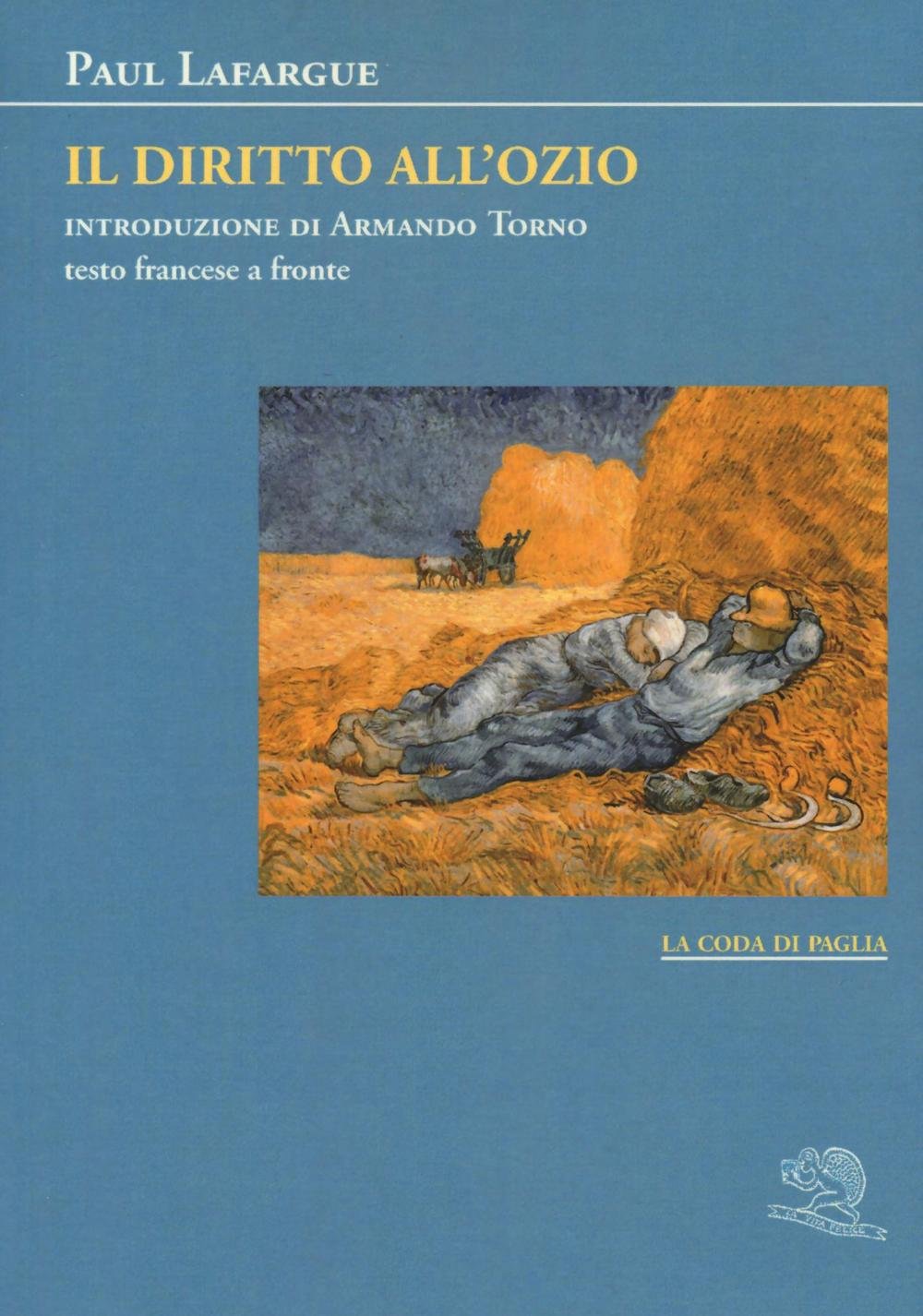 Pubblicato sotto forma di articoli per la rivista "L'Égalité", nel 1880, "Il diritto all'ozio" non è solo un'apologia della disponibilità e dell'ozio, ma si tratta di una requisitoria a favore del "diritto al tempo libero". Il pamphlet è un esempio del gusto per il paradosso di Lafargue, già notato da Jaurès e Gabriel Deville, che ricordano "il primo discorso alla Camera del deputato del Nord e le sue vane avances ad Abert de Mun". Lafargue contrappone violentemente e come per partito preso l'ozio al lavoro e non si perita di affermare che l'eccessivo lavoro cui il proletariato si è dato agli inizi del XIX secolo è "il peggior flagello che abbia mai colpito l'umanità". Ciò che maggiormente anima il pamphlet è l'essere costellato di ritratti caricaturali, alcuni riferentisi a realtà collettive, altri a individui. A ciascuno il suo. Introduzione di Armando Torno.