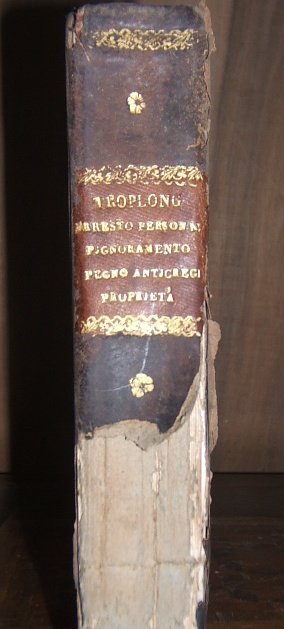 PRIMA TRADUZIONE ITALIANA COL CONFRONTO DEGLI ARTICOLI DEL CODICE DELLE DUE SICILIE OPERA CHE PUO SERVIRE DI CONTINUAZIONE A QUELLA. (CON PICCOLI TRATTATI DELLA PROPIETA SECONDO IL CODICE CIVILE, PRIMA VERSIONE DAL FRANCESE DI VINCENZO CAPRARA MILANO 1850 PAG 116) MANCA META DORSO NELLA PARTE INFERIORE(VED FOTO)