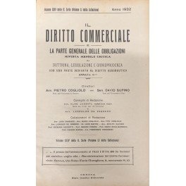 Il Diritto Commerciale e la parte generale delle obbligazioni. Diretta da: P. Cogliolo, D. Supino, L. Parodi. Annata 1932. Parte I - Dottrina. Parte II - Giurisprudenza