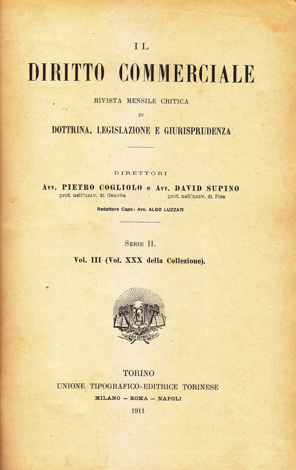 IL DIRITTO COMMERCIALE serie II volume III rivista giurisprudenza 1911 UTET