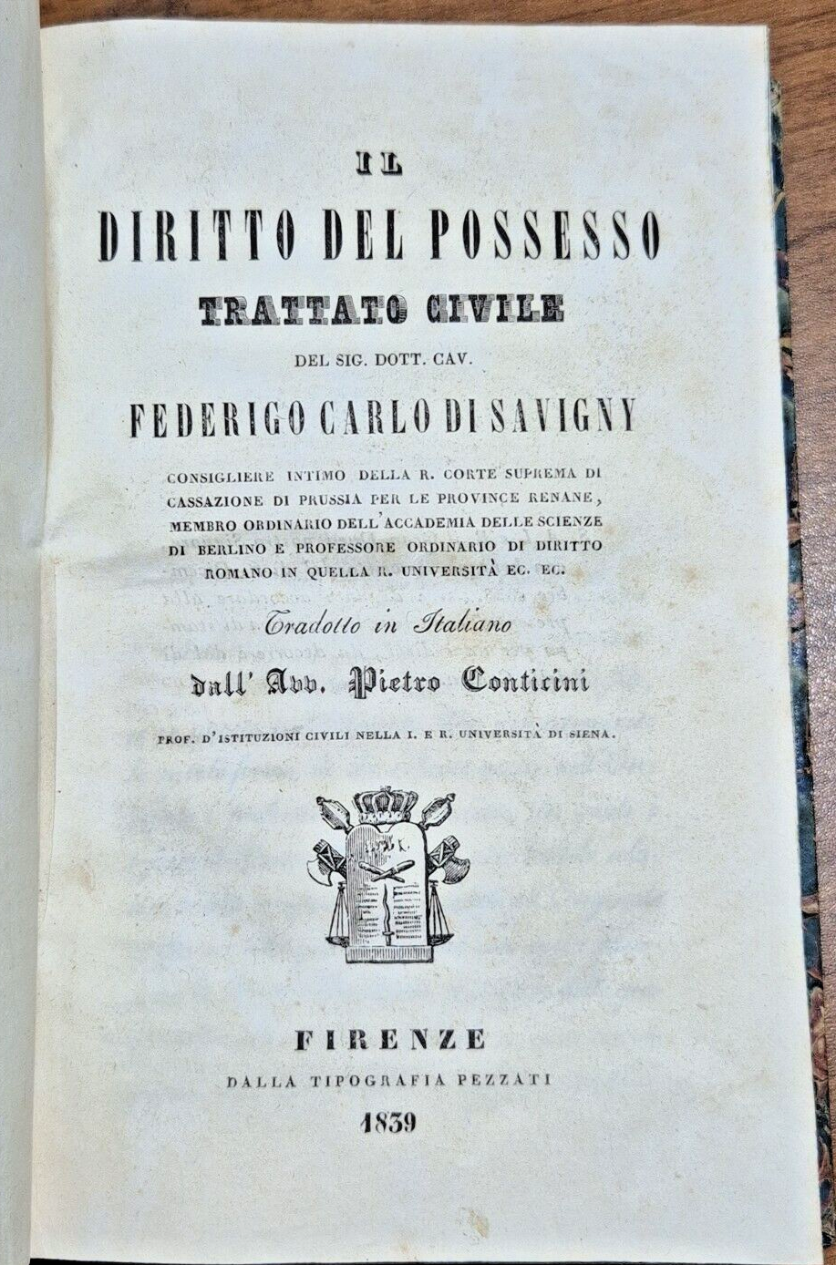 IL DIRITTO DEL POSSESSO TRATTATO CIVILE di Carlo Savigny 1839 Pezzati Libro