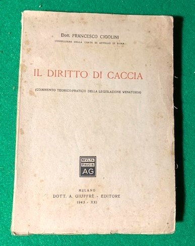 In 4°; XXIX, (3), 540 pp. Brossura editoriale con titolo impresso in rosso e nero al piatto anteriore. Prima edizione di questo testo dedicato alla legislazione dell'arte venatoria. Ceresoli, 157: "Trattato completo sulla legislazione e il diritto di caccia".