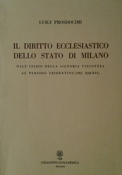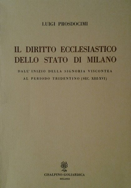 IL DIRITTO ECCLESIASTICO DELLO STATO DI MILANO. - Dall'inizio della signoria Viscontea al periodoTridentino (sec. XIII - XVI).