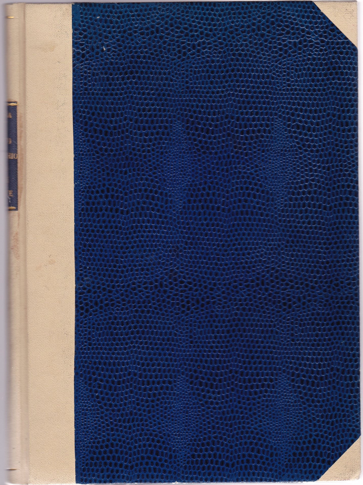 Legatura in mezza tela blu e similpelle zigrinata con titolo in oro al dorso.