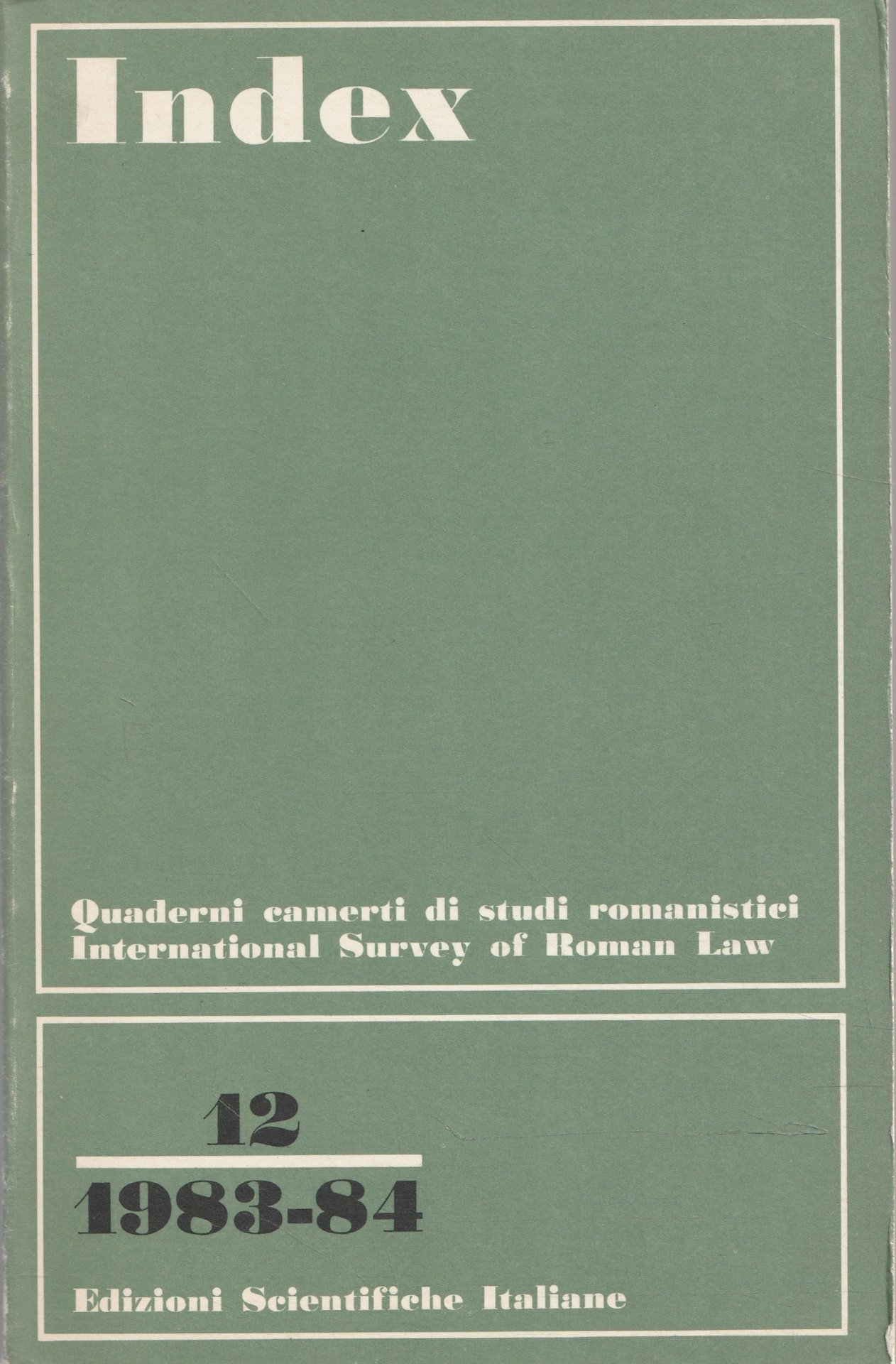 AP.13Brossura editoriale,Index. Quaderni camerti di studi romanistici. International Survey Of Roman Law n.12 / 1983-84, volume in ottime condizioni, copertina e interno in ottimo stato, legatura salda 582 pagine circaCopertina come da foto