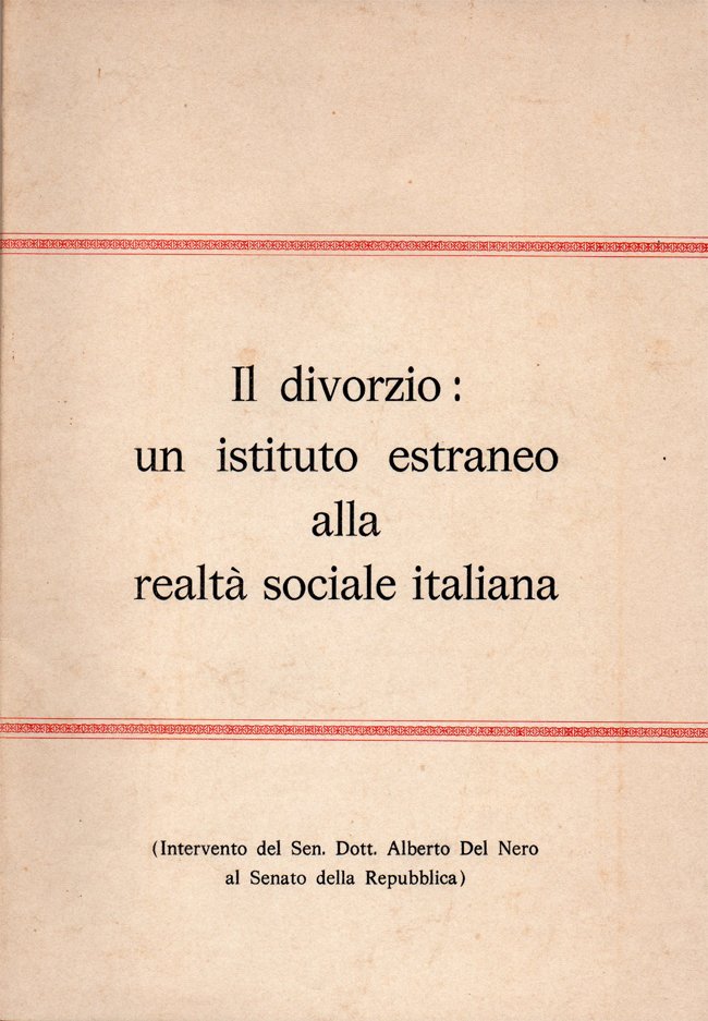 Il divorzio: un istituto estraneo alla realtà sociale italiana (Intervento del Sen. Dott. Alberto Del Nero al Senato della Repubblica)
